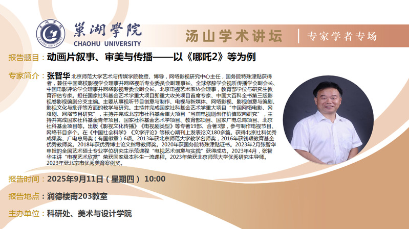 • 9月11日:北京師范大學張智華教授講座